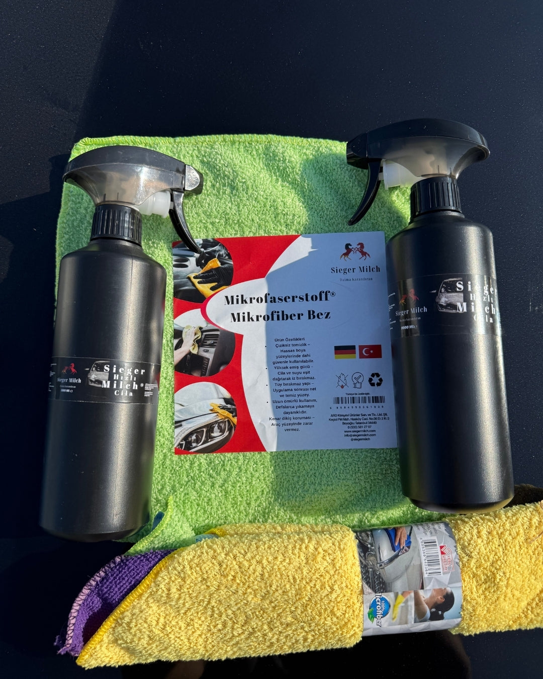 Sieger Milch Hızlı Araç Cilası 500ml Sprey + Microfiber Bez (2'li)